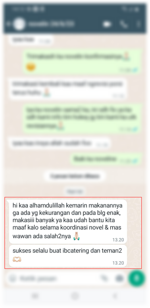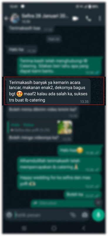 Kami tidak hanya menyajikan makanan, tetapi juga memperhatikan dekorasi yang selaras dengan konsep pernikahan Anda. Baik itu modern, tradisional, atau Jawa, dekorasi catering kami siap menyempurnakan acara dengan sentuhan yang indah dan detail yang memukau. Setiap elemen, mulai dari hiasan prasmanan, area VIP, hingga menu pondokan, dipadukan secara harmonis untuk menciptakan suasana yang istimewa dan meninggalkan kesan mendalam bagi Anda dan tamu.
